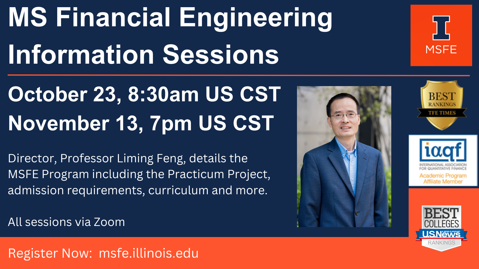 Illinois MS Financial Engineering Information Sessions Our MS Financial Engineering Virtual Information Sessions, which give you a taste of the topics and experiences our students participate in during the program, will be posted here. We will cover all the important aspects of our program and an in-depth view of our MSFE Practicum Project. Upcoming Sessions: